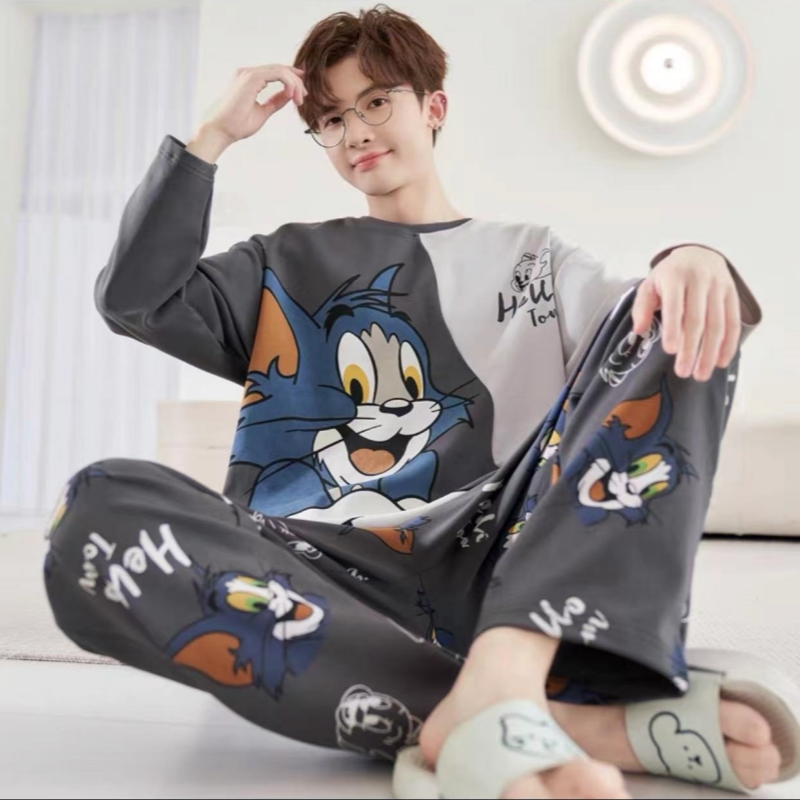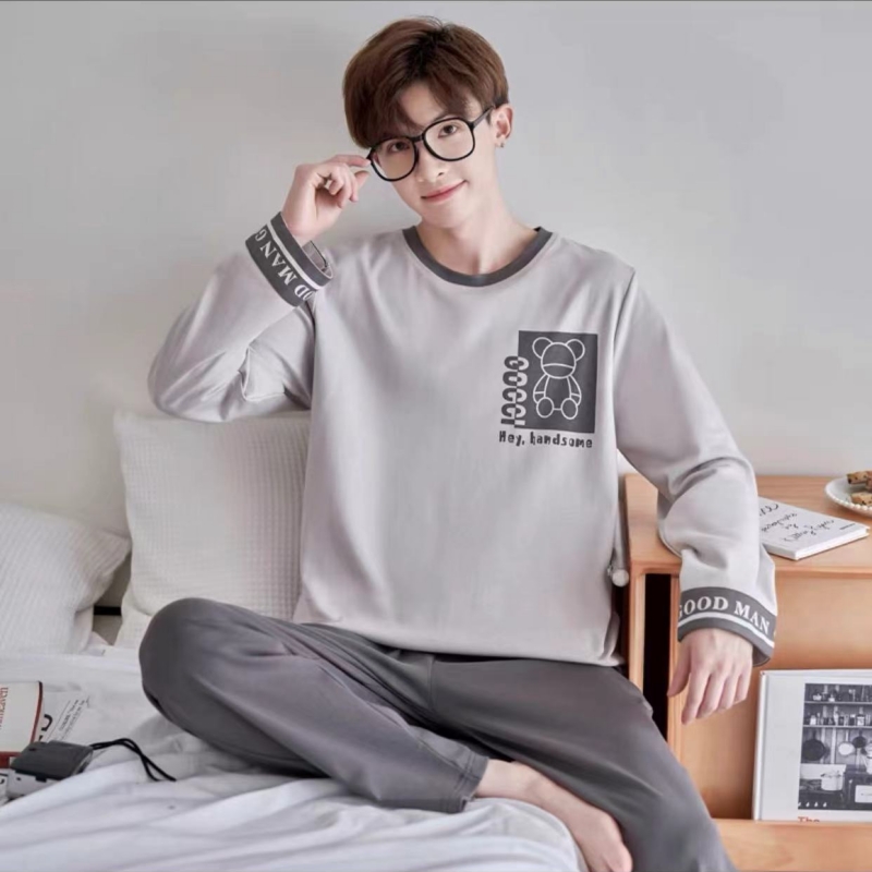家居服套装 男士 青少年初中学生外穿2025年新款 纯棉长袖 睡衣春秋款