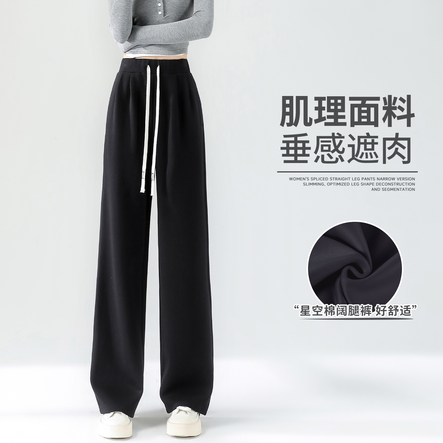 2025秋季 新款 运动拖地裤 垂感显瘦休闲裤 弯口袋糯米阔腿裤