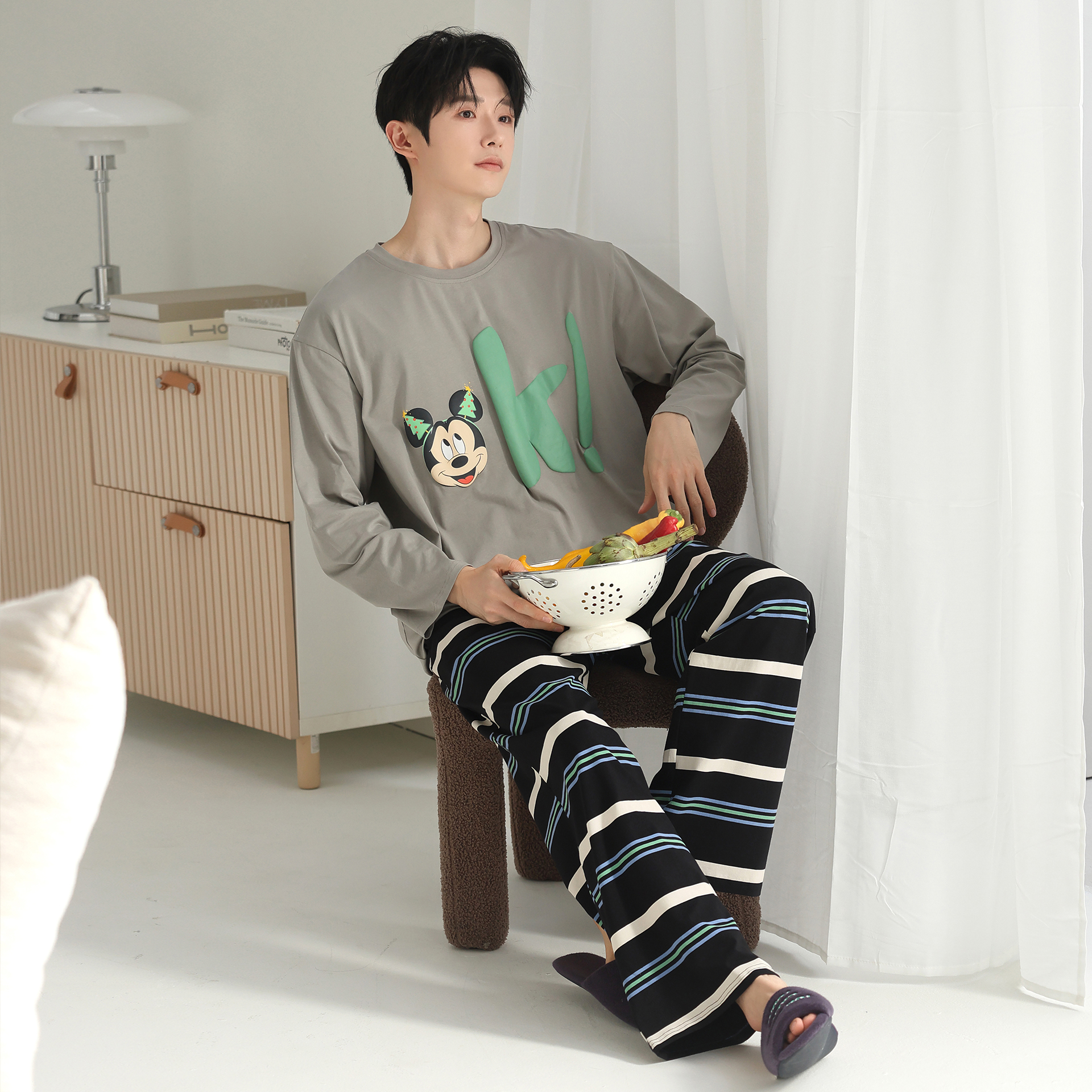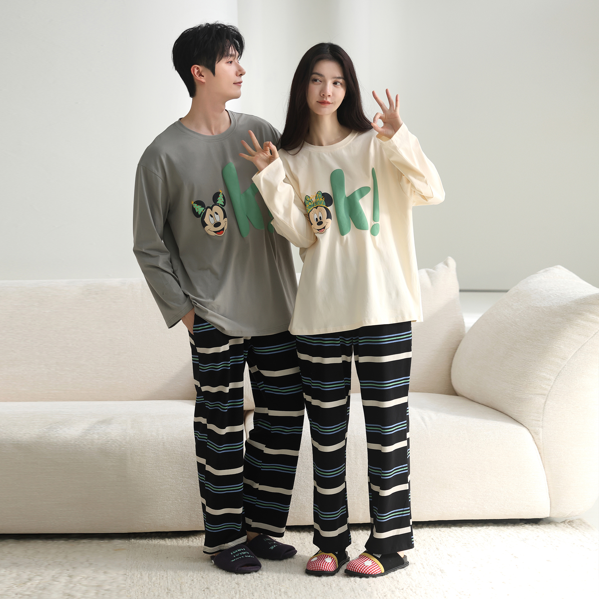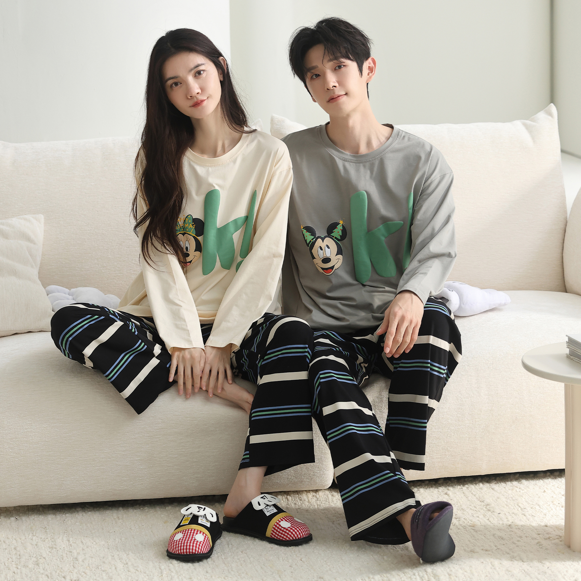 舒适家居服套装 迪士尼米奇情侣睡衣春秋长袖 纯棉女士可爱卡通男士