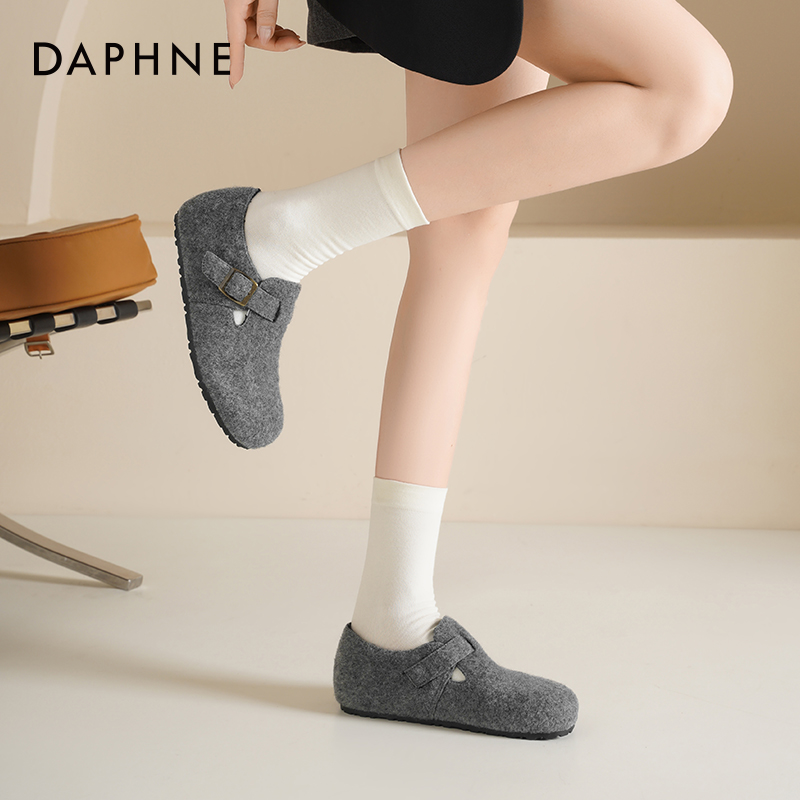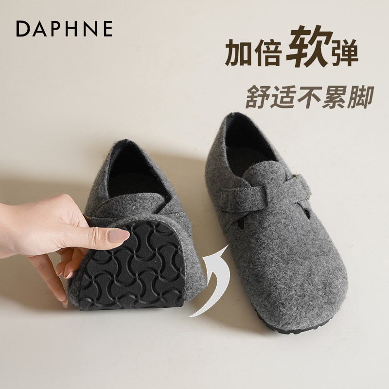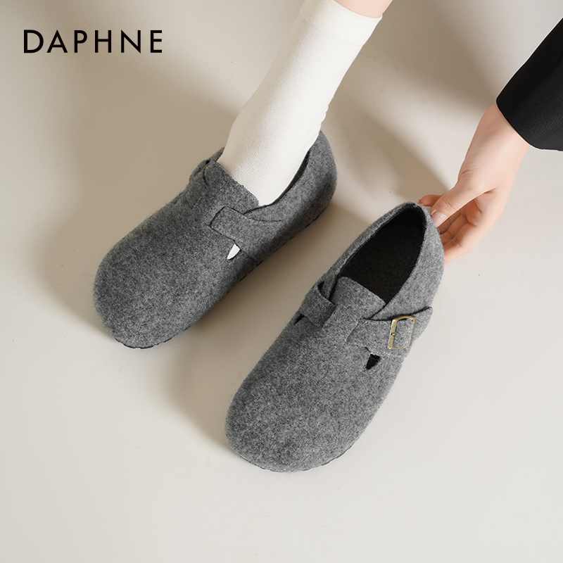 一脚蹬单鞋 达芙妮毛毡勃肯鞋 软底百搭灰色毛毛鞋 秋季 女 女2025新款
