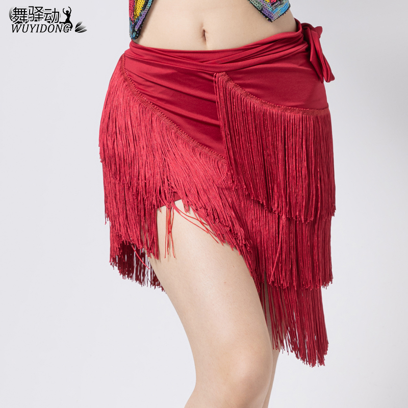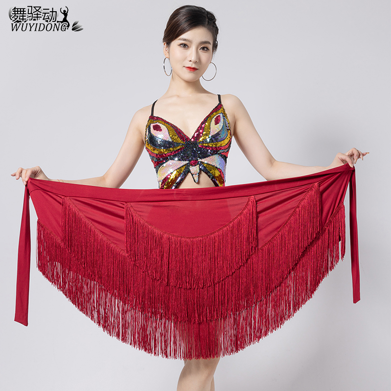 新款 拉丁舞流苏臀巾女成人不规则舞蹈半身裙肚皮舞一片裙子练功服