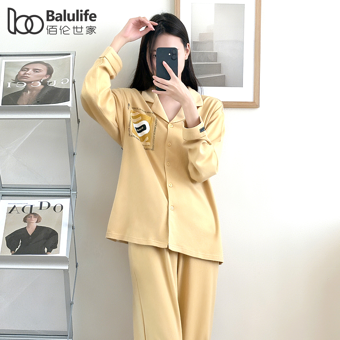 长袖 全棉大码 套装 女款 家居服 简约休闲秋季 芬腾春秋睡衣女纯棉开衫