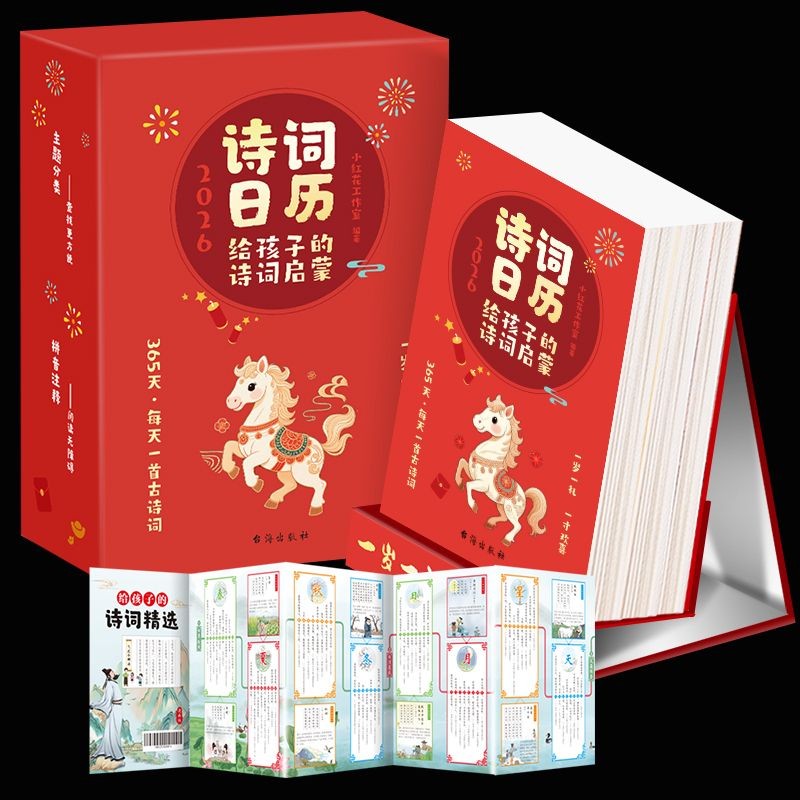 正版 365天每日一首古诗词马年新款 现货 诗词启蒙 诗词精选诗词诗画台历全彩公历农历节日小学一二三年级 诗词日历2026年给孩子