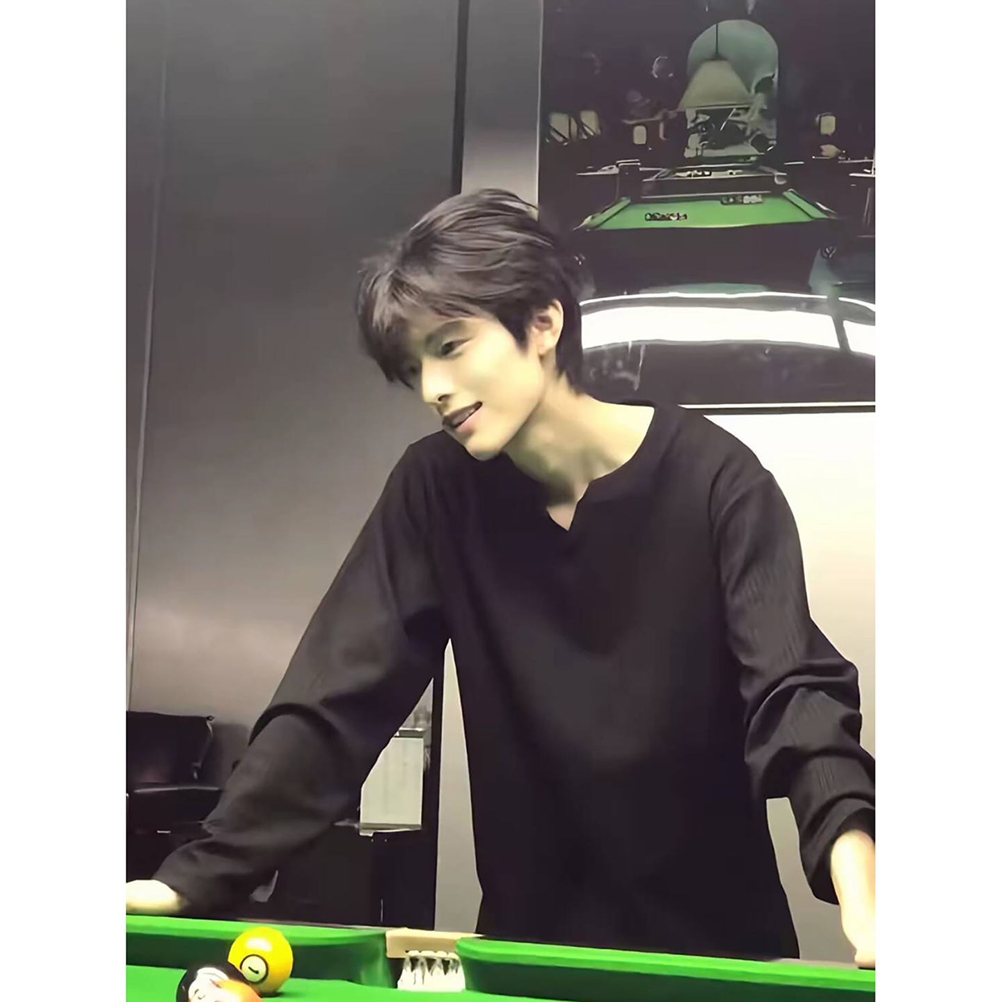 高街内搭打底衫 黑色轻熟风V领卫衣男款 t恤美式 痞帅小领口长袖 秋季