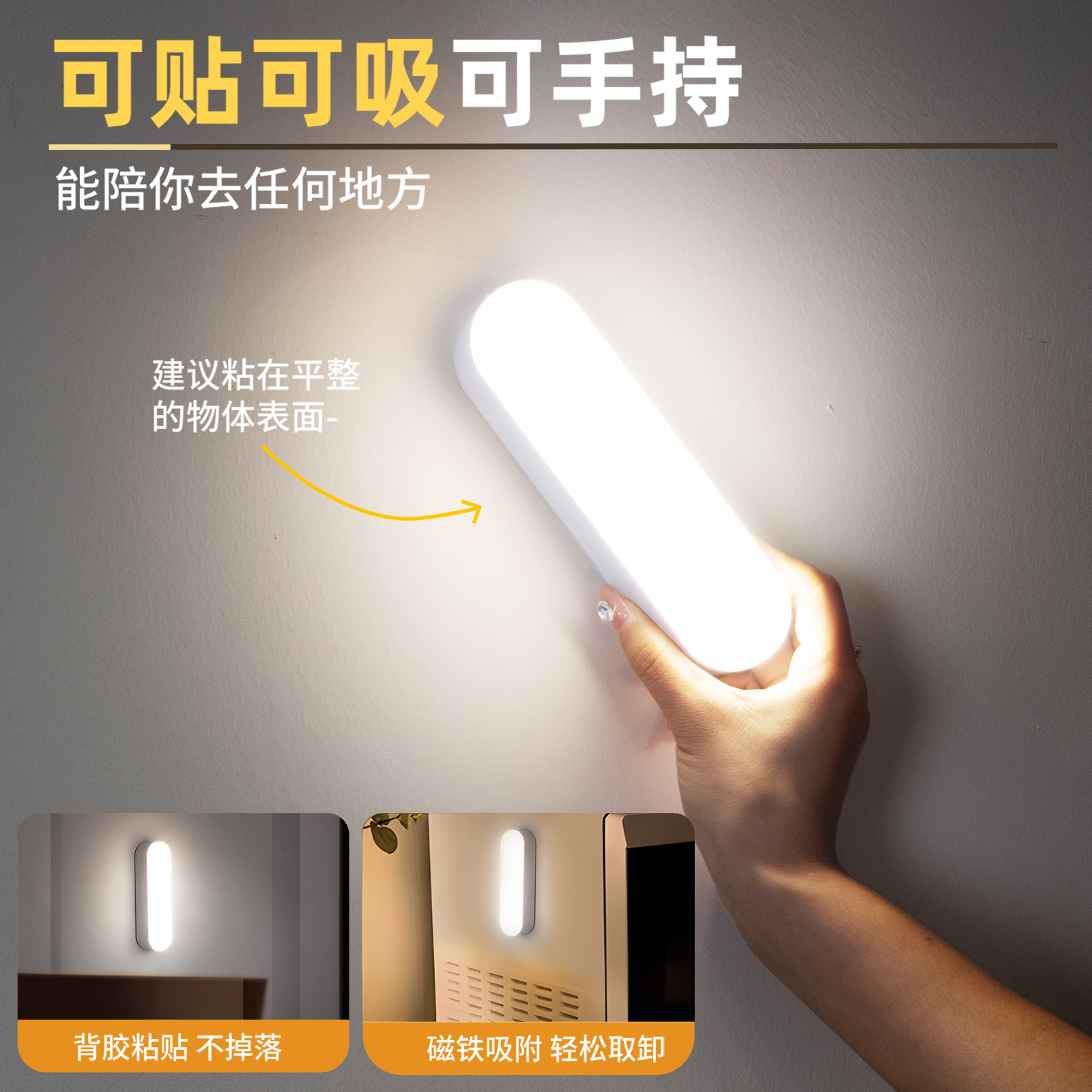 智能人体自动感应小夜灯磁吸充电大容量夜间起夜人来即亮人走即灭