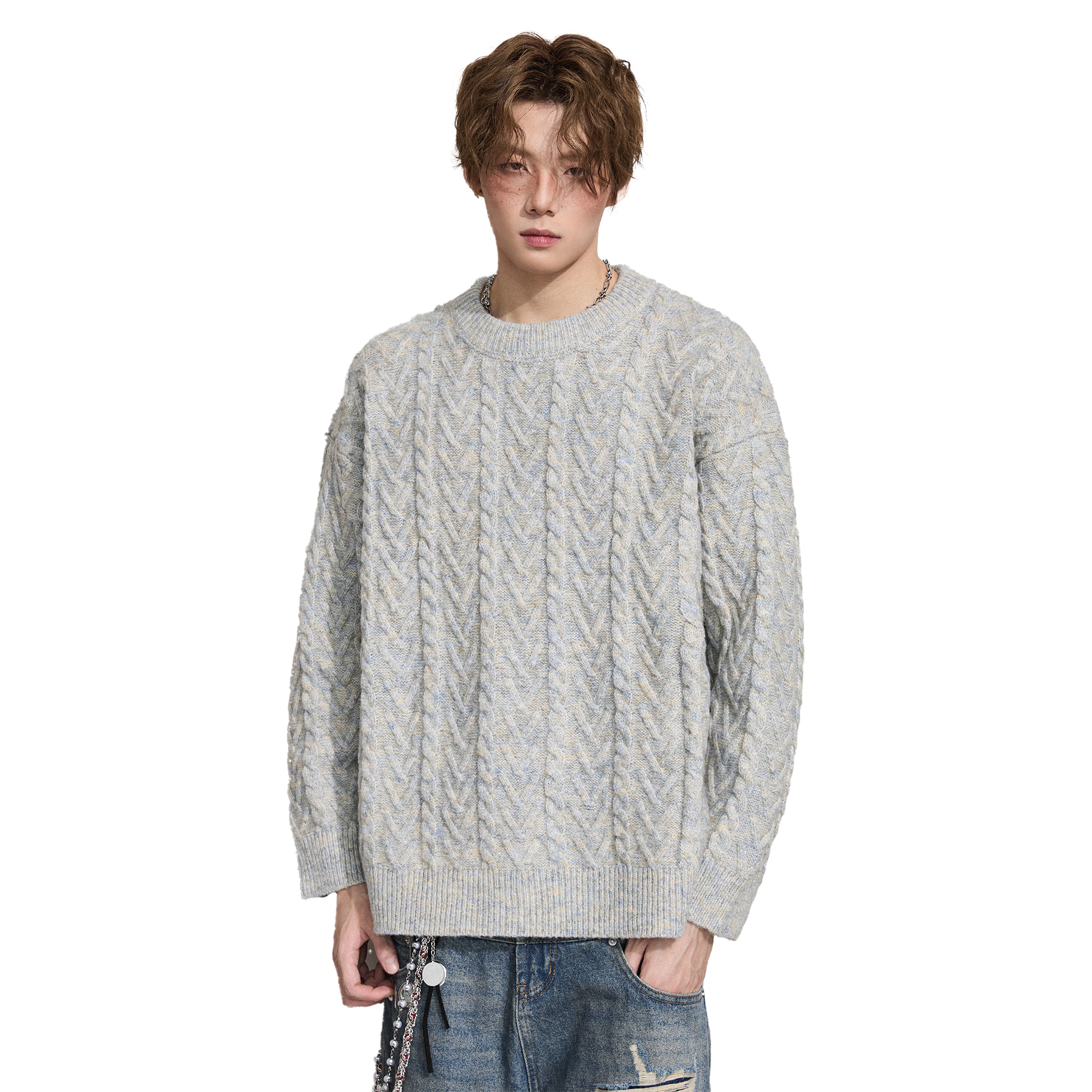 ALLIN 休闲毛线上衣 情侣慵懒风混色毛衣男秋冬保暖圆领套头针织衫
