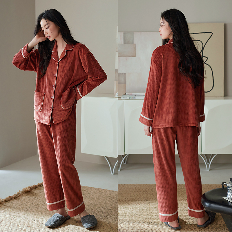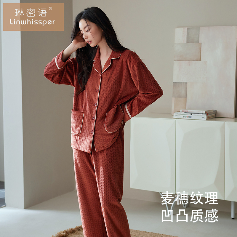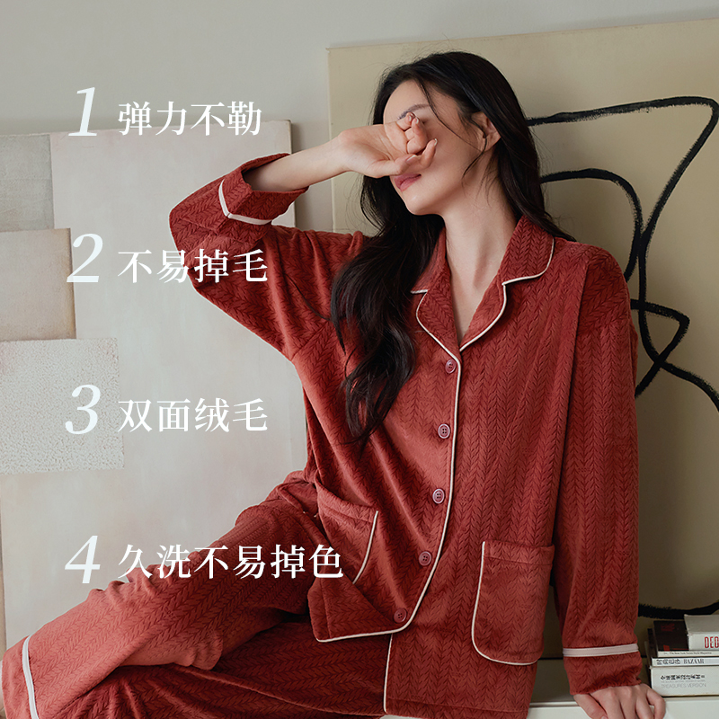 薄绒家居服套装 睡衣女秋冬季 加绒加厚海岛绒珊瑚绒高级感大码