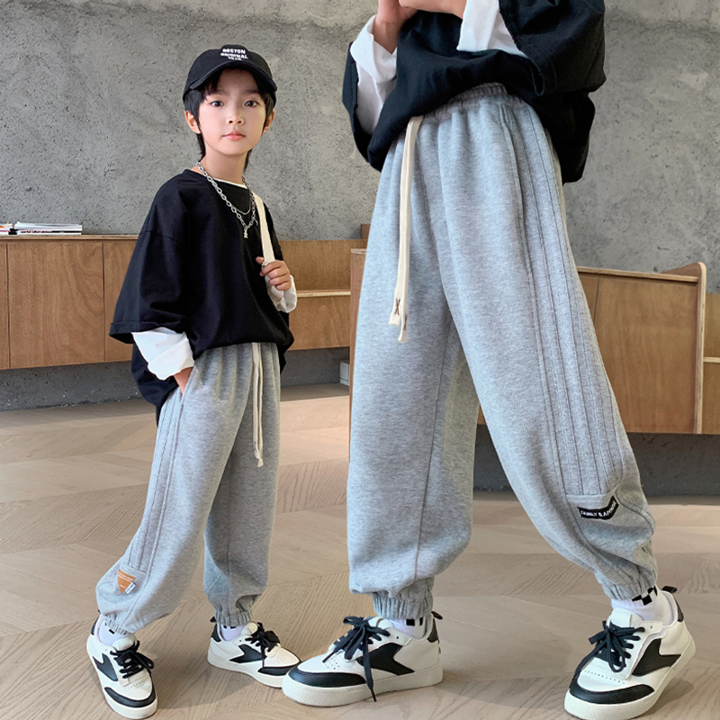 加绒街舞穿搭褶皱宽松休闲长裤 女秋冬季 子 灰色运动卫裤 自然涩美式