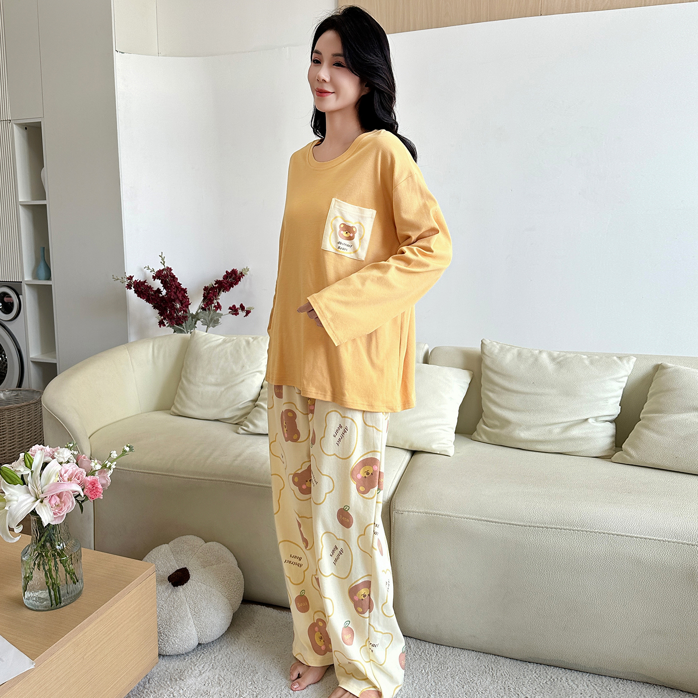 长裤 套装 加大码 猫人睡衣女款 棉家居服2025新款 长袖 秋冬款 春秋季