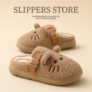 室内家居防滑保暖加绒厚底棉拖鞋 棉拖鞋 秋冬季 2025新款 女冬天 女款
