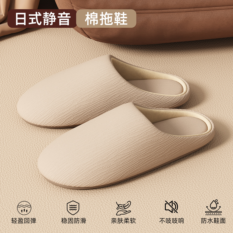 防滑室内家居软底情侣拖鞋 新款 男 女士2025秋冬季 PU防水静音棉拖鞋