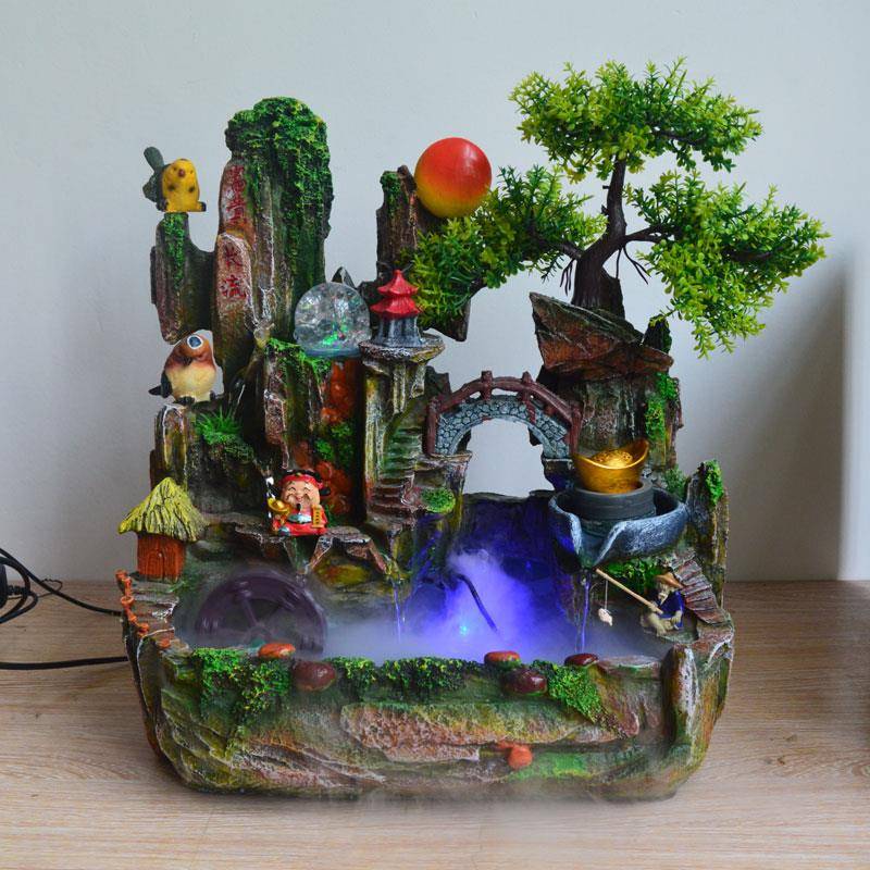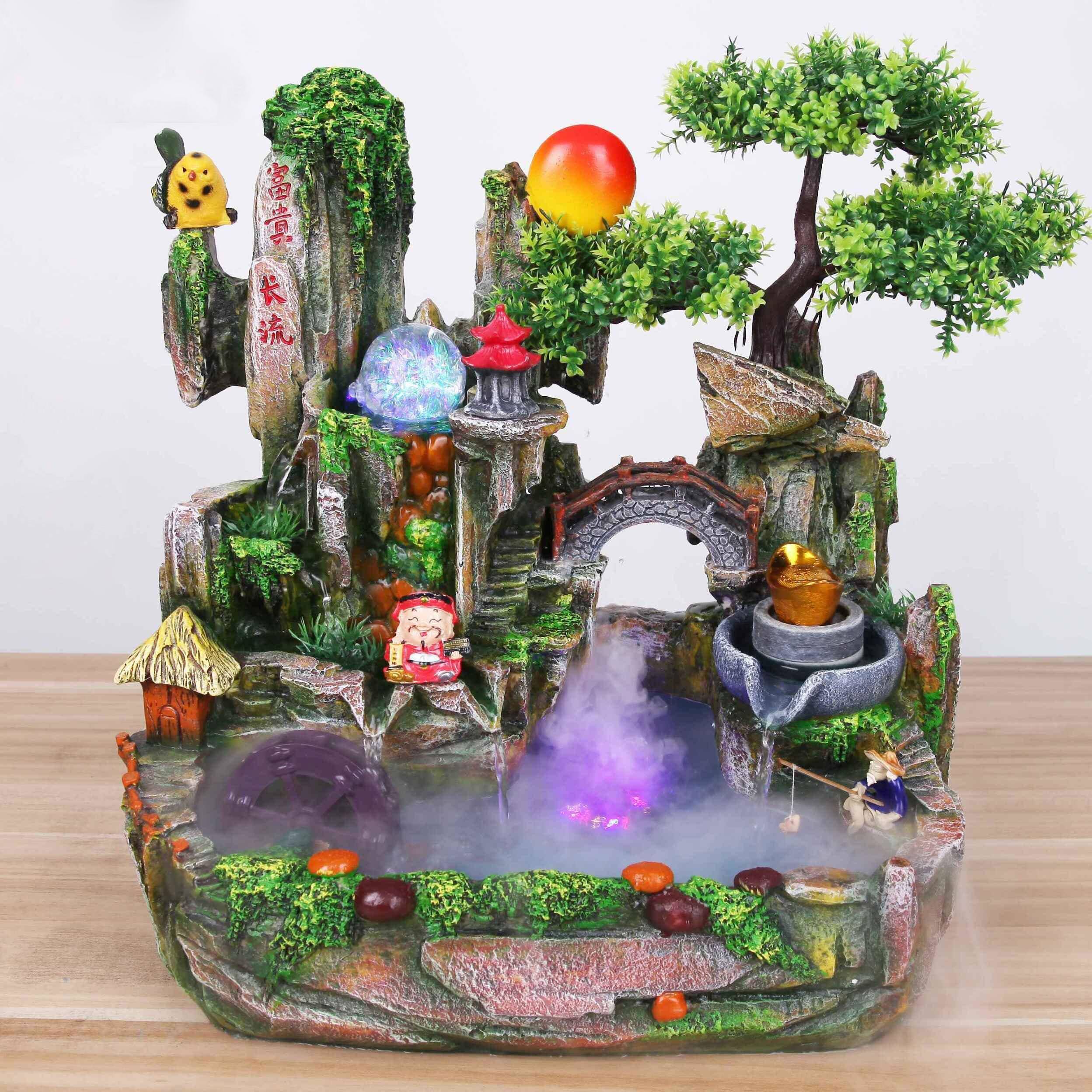 流水喷泉假山风水轮摆件家居客厅加湿器桌面招财鱼缸室内盆景装 饰