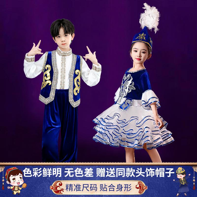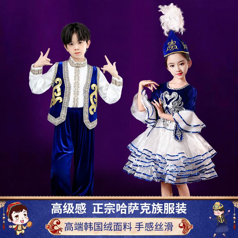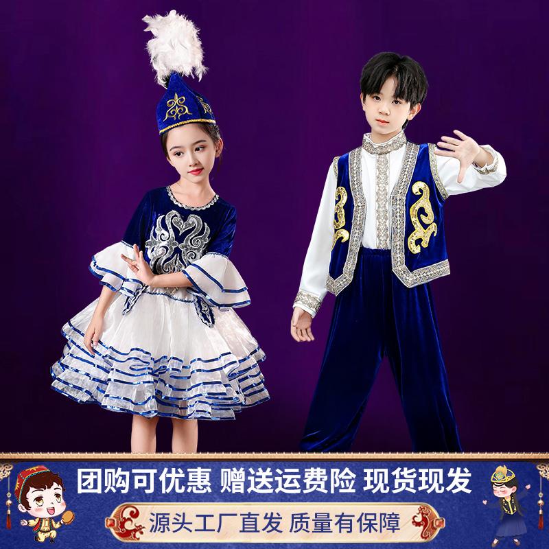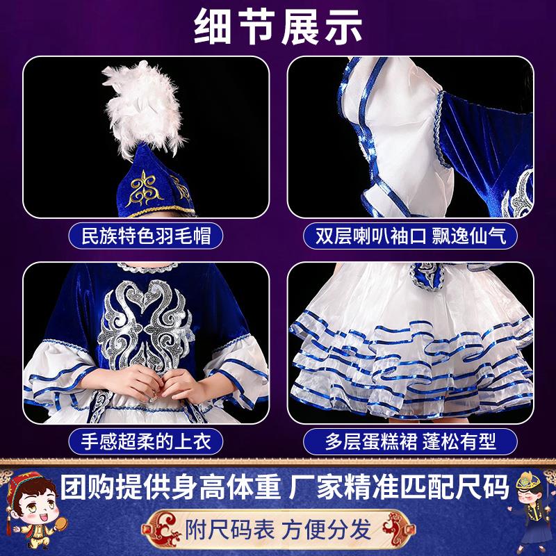 儿童哈萨克族服装 民族舞蹈服塔塔尔族塔吉克族新疆维吾尔族演出服