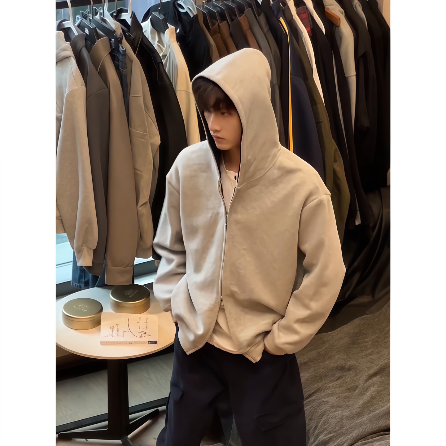 外套情侣运动上衣 穿搭拉链开衫 cleanfit美式 重磅连帽卫衣男生秋季