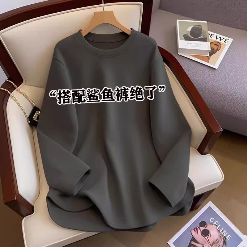 遮屁股长袖 秋冬季 中长款 女新款 t恤卫衣上1011n 灰色内搭加绒打底衫