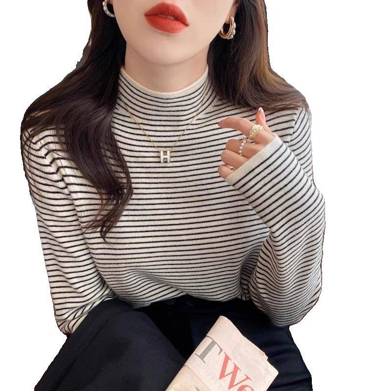 黑白条纹半高领针织衫 上衣1010c 女内搭气质不起球毛衣感打底衫