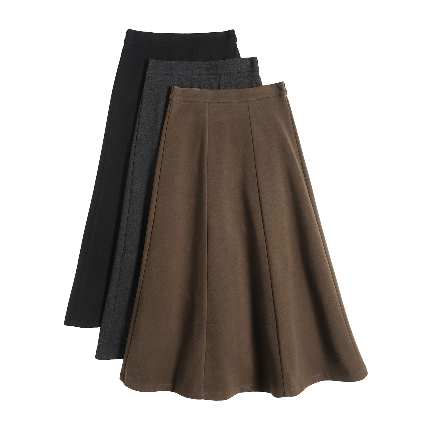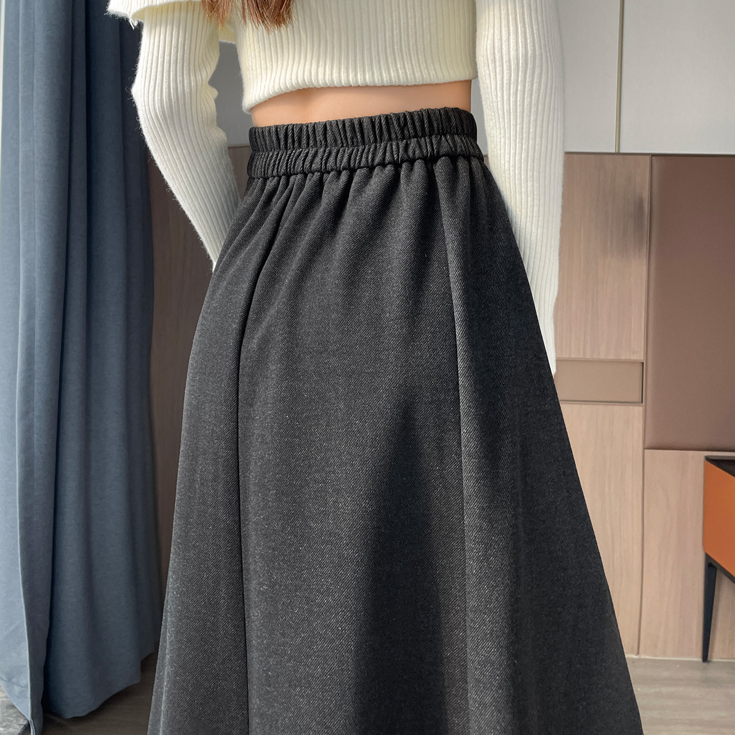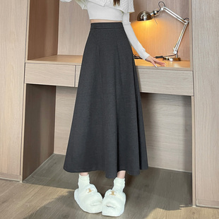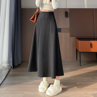 毛呢半身裙女2025秋冬款 伞裙 灰色松紧高腰A字垂感显瘦气质中长款