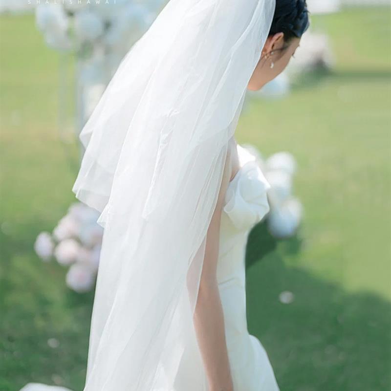 好货头纱新娘主婚纱森系超仙订婚结婚头饰蓬蓬纱长款 高级感旅拍照