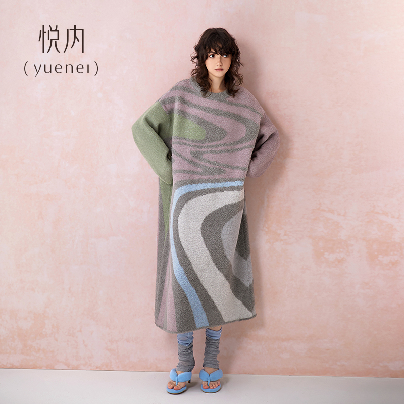 浴袍秋冬家居服 睡衣休闲慵懒风睡裙大码 轩靓睡袍女春秋季 纯棉长袖