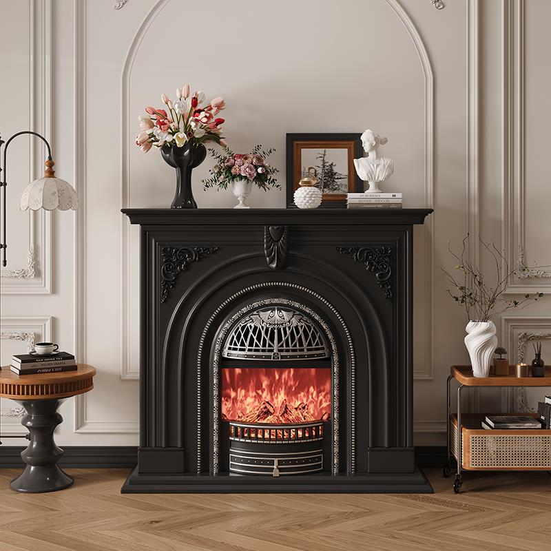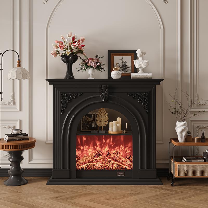 饰柜仿大理石仿真木柴火焰电子取暖器壁挂 装 轻法式 实木壁炉架美式