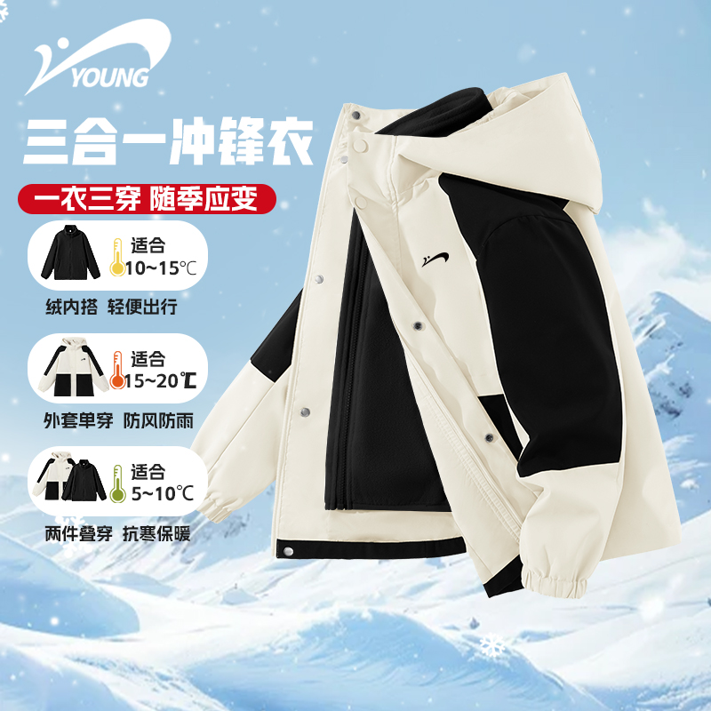 男孩防风耐磨冬装 贵人鸟童装 男童外套儿童三合一户外冲锋衣秋冬款
