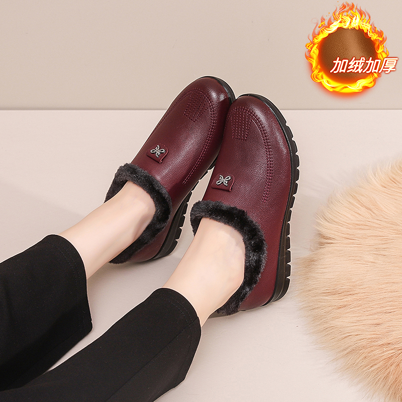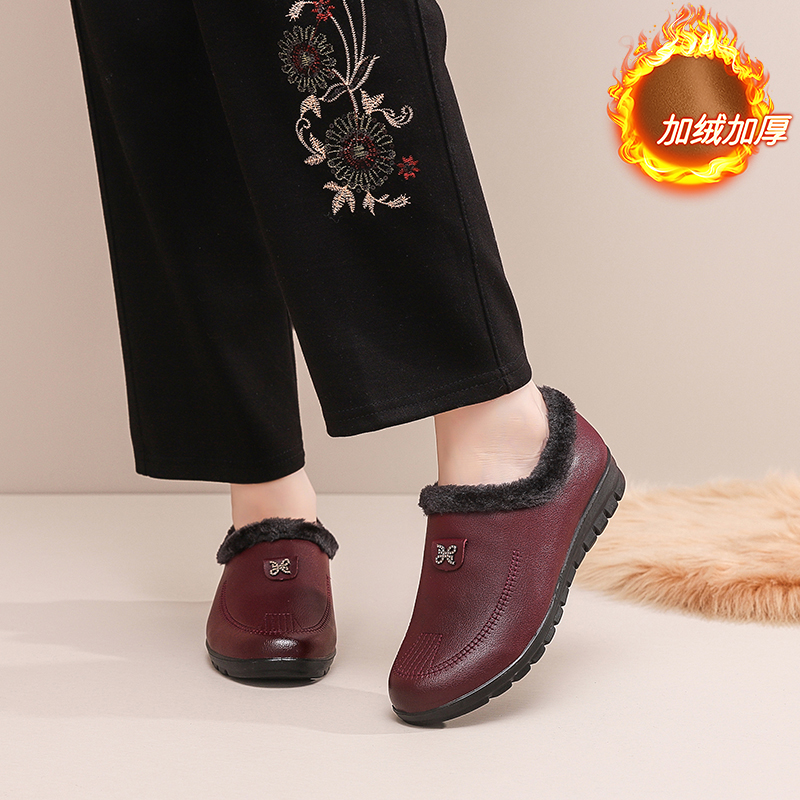 加绒加厚保暖一脚蹬软底防滑妈妈鞋 新款 雪地靴 女2024冬季 棉鞋