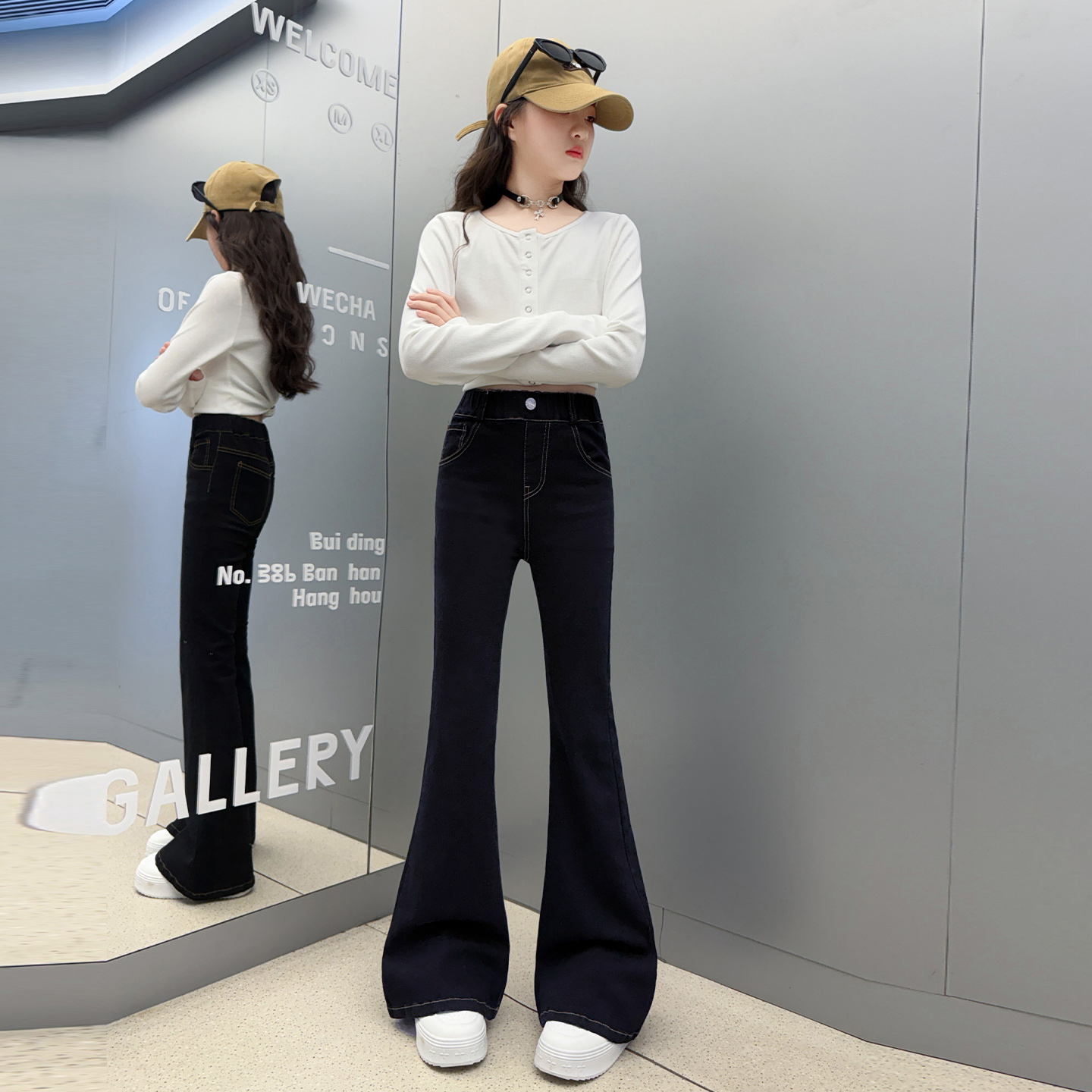 中大童休闲时髦喇叭裤 女童裤 儿童加绒保暖牛仔裤 2025新款 子秋冬款