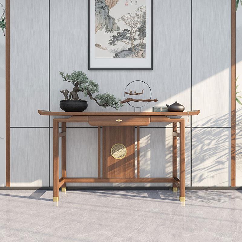 入户正对门玄关桌老榆木条案新中式 玄关台玄关柜全实木条几置物台