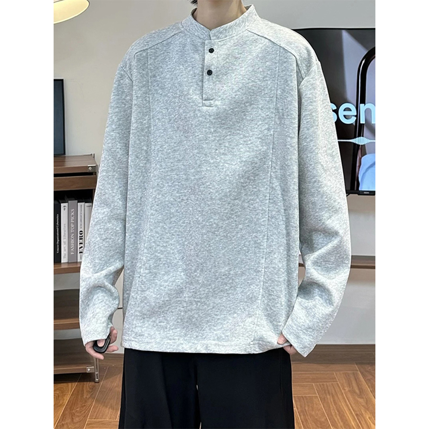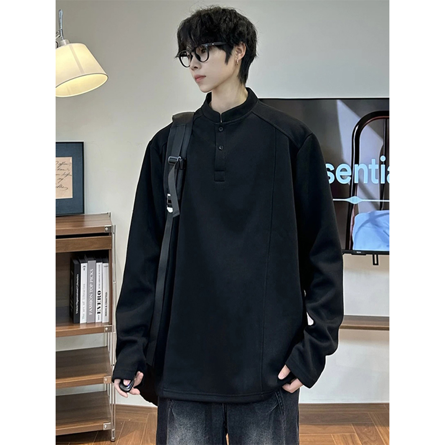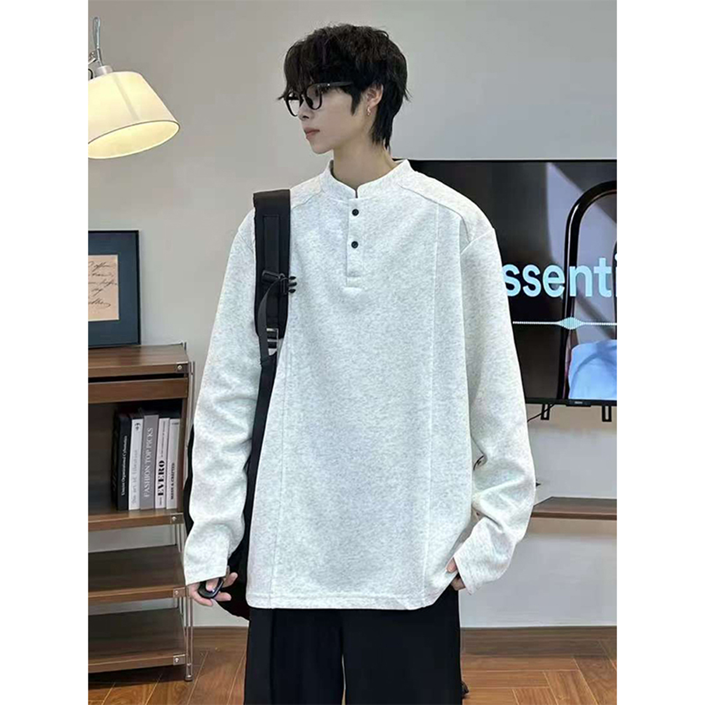 t恤衫 纯色棉白中领立领长袖 上衣 女春秋内搭2025新款 半高领打底衫