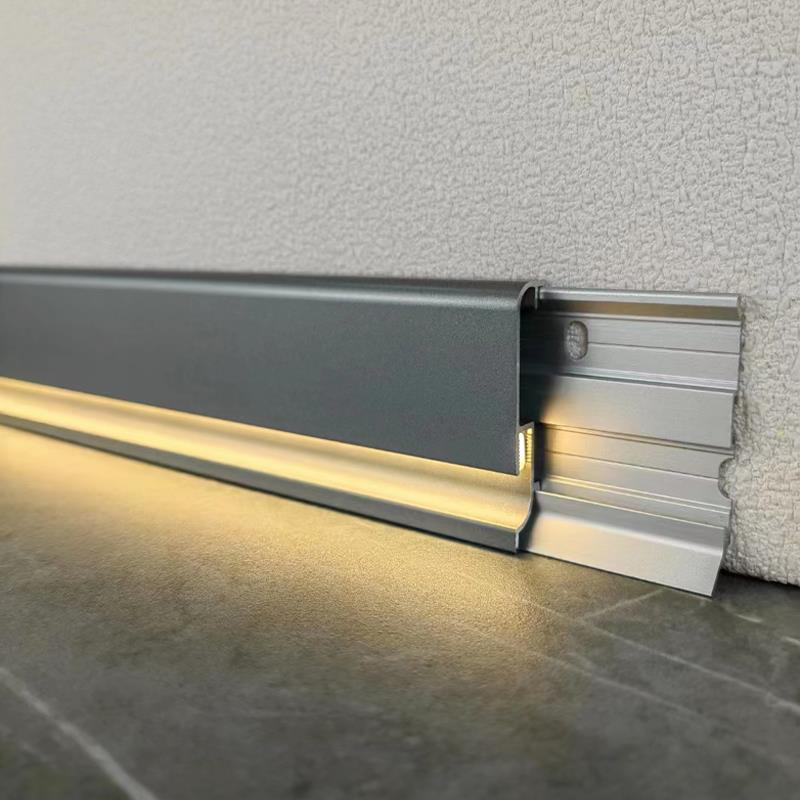 铝合金发光踢脚线5cm灯带明装 饰线条 地脚线内嵌护墙板踢脚金属装