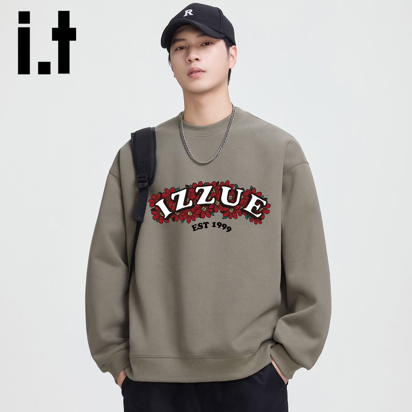 宽松休闲慵懒风打底衫 复古圆领卫衣男2025新款 izzue官方美式
