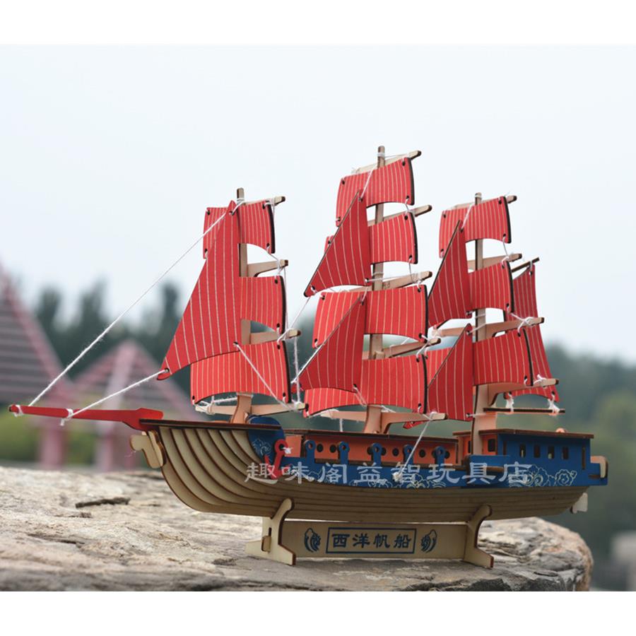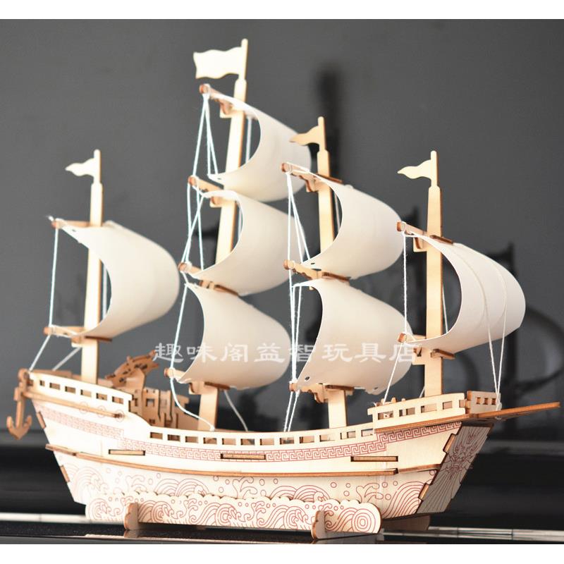 大型组装 木头仿真船玩具船模型 木质舰船手工立体拼图模型diy拼装