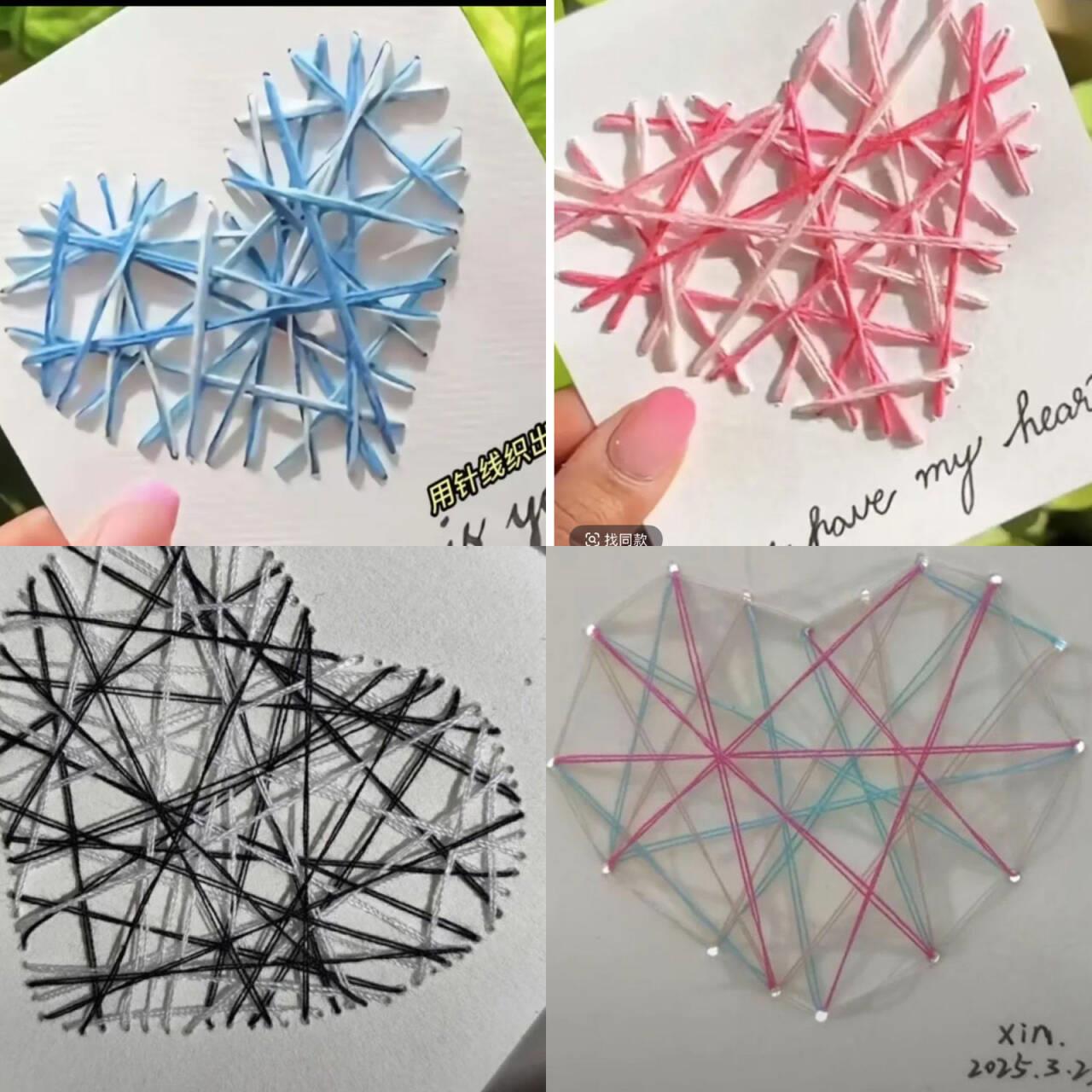 贺卡爱心表白手工礼物diy情侣告白摆件挂件材料包用针线织出爱心