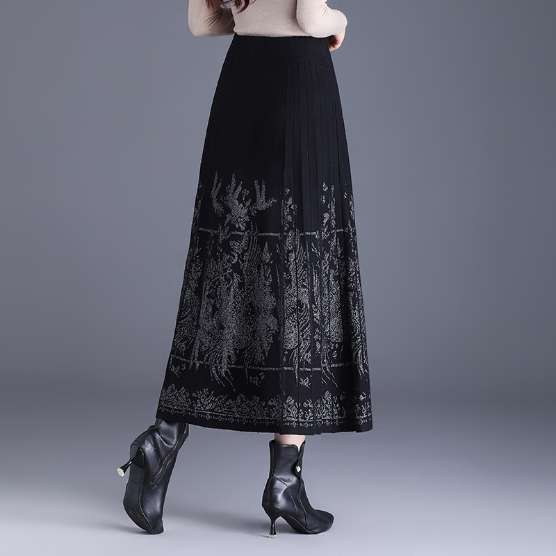 2025新款 印花毛线半身裙 秋冬针织大摆裙女高腰显瘦a字裙中长款