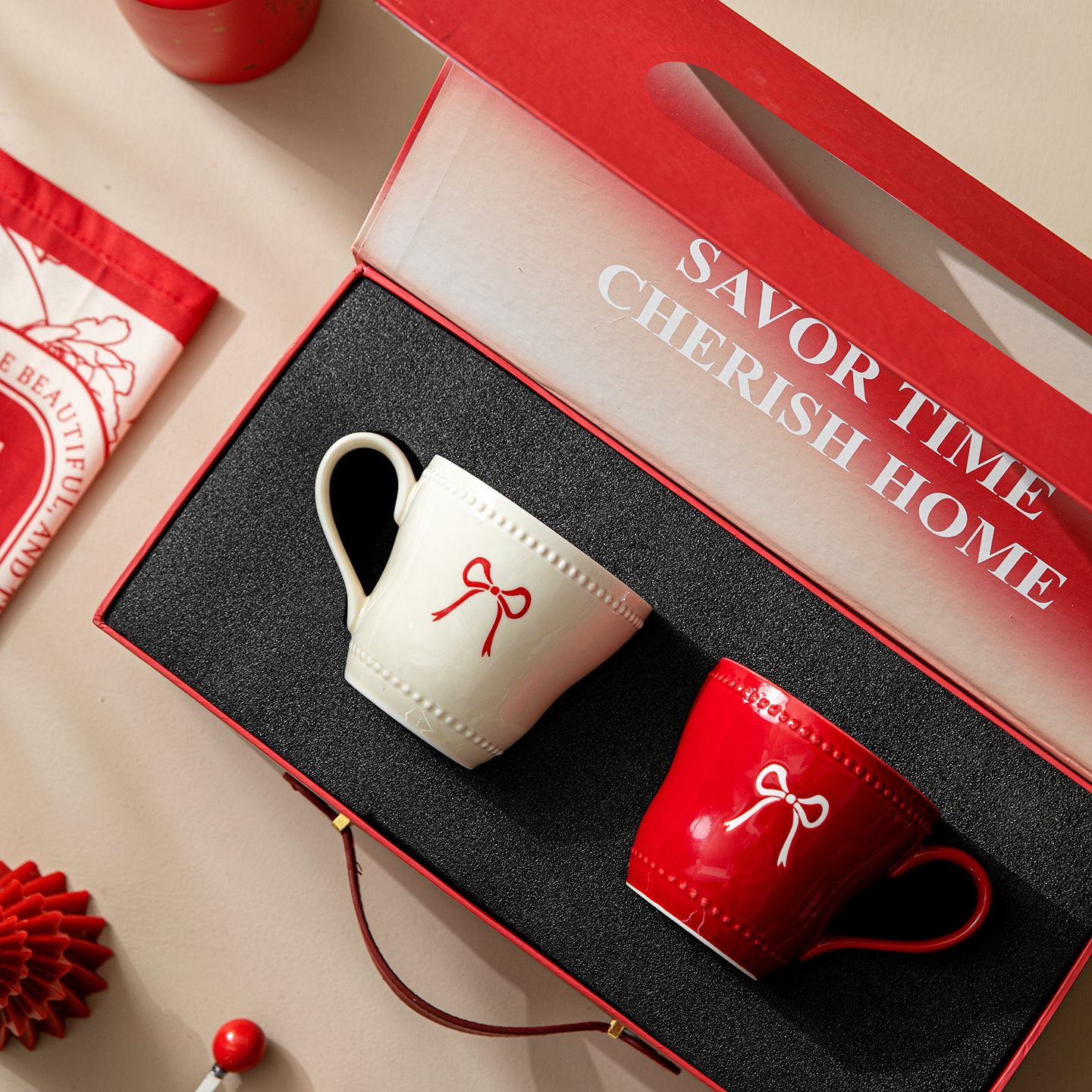 摩登主妇马克杯情侣对杯水杯套装 红色杯子订婚结婚新婚礼物送新娘