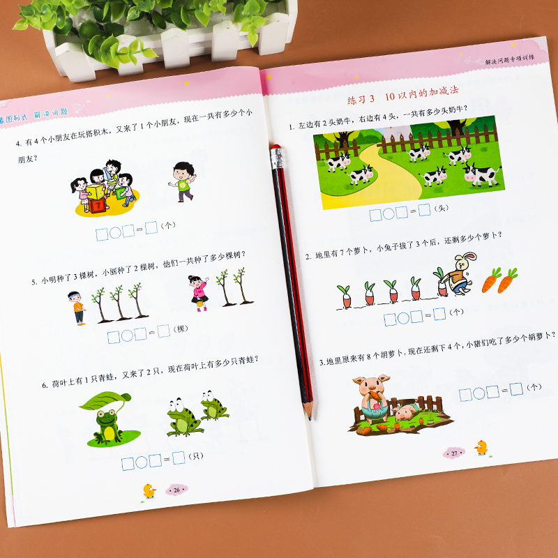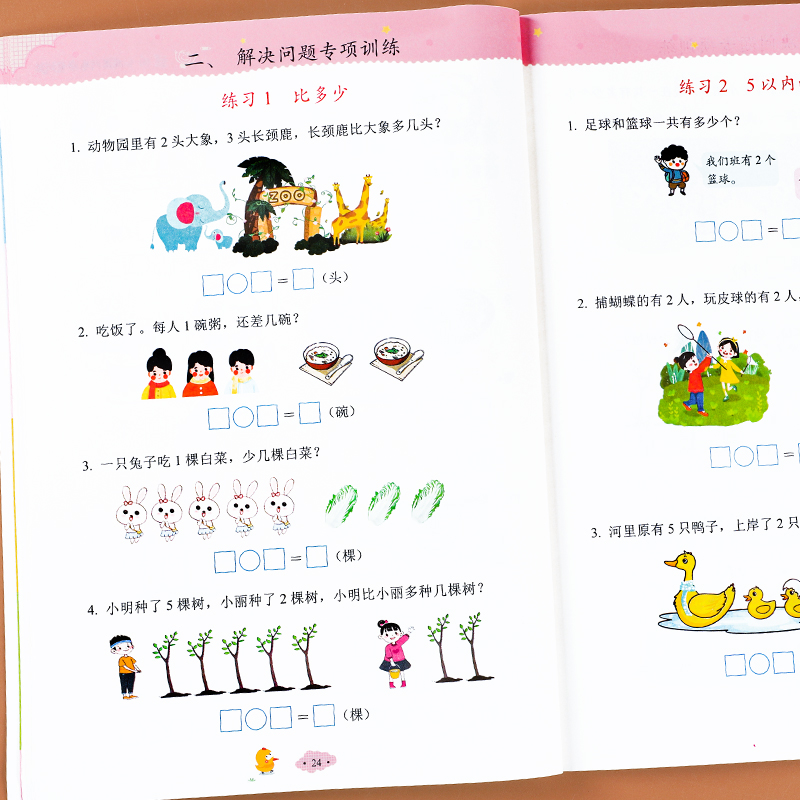 20以内加减法天天练人教版 2025新版 解决问题幼小衔接5 一年级上册口算题卡数学计算应用题思维强化专项同步训练 一年级看图列式
