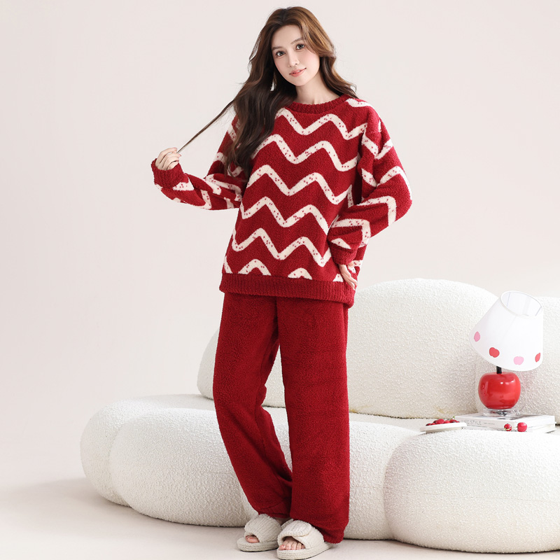 2025新款 套装 长裤 都市丽人情侣睡衣纯棉结婚本命年红色家居服长袖
