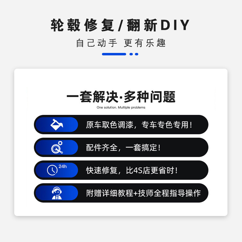 汽车轮毂修复划痕铝合金缺口翻新抛光改色喷漆钢圈修补银色不褪色