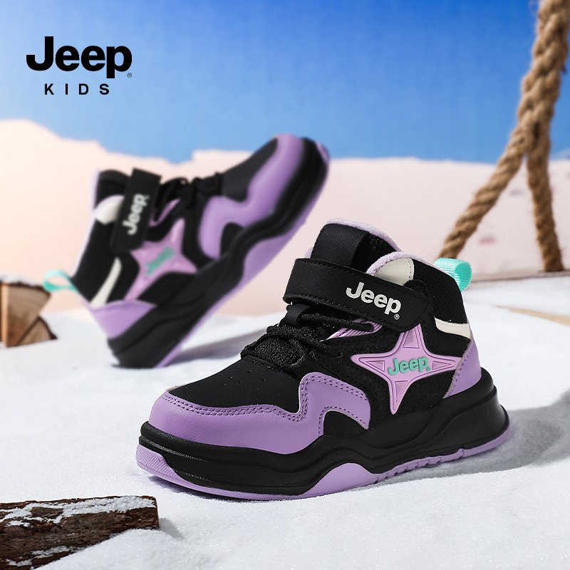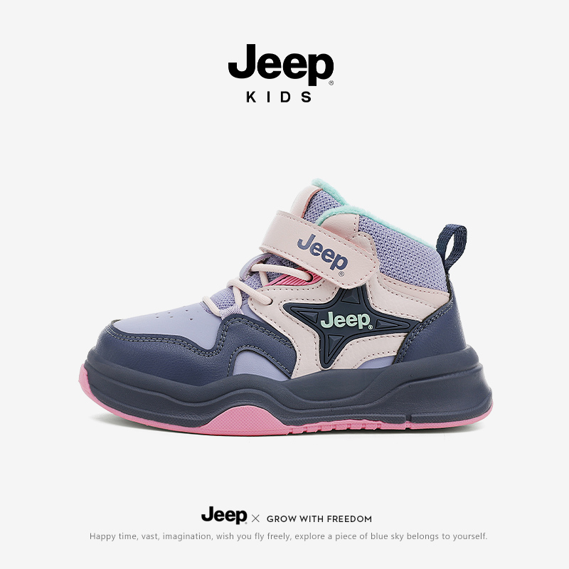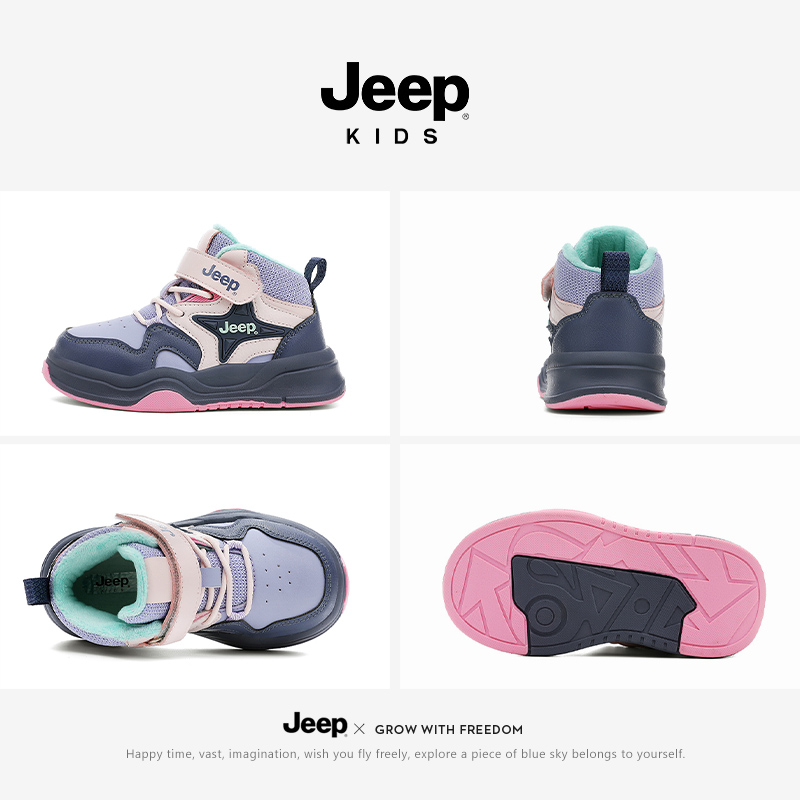 2025新款 冬季 女童运动鞋 魔术贴加绒二棉棉鞋 jeep儿童鞋 板鞋 子童鞋