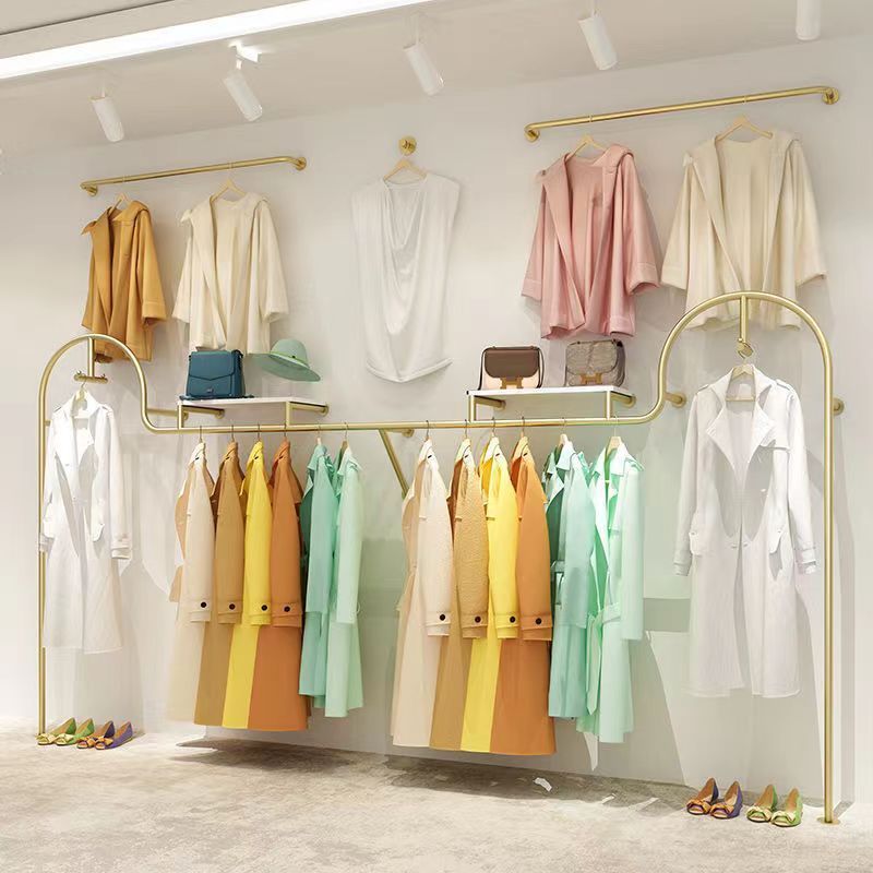店铺专用童装 架子金色展示架女装 衣服挂衣架定做 店上墙壁挂式 服装