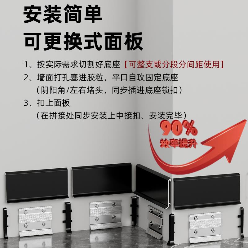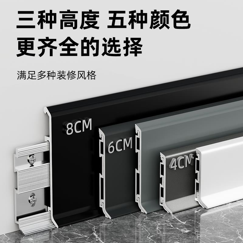 铝合金踢脚线4公分6cm8cm金属地脚线双层挂式 不锈钢圆弧形贴脚线