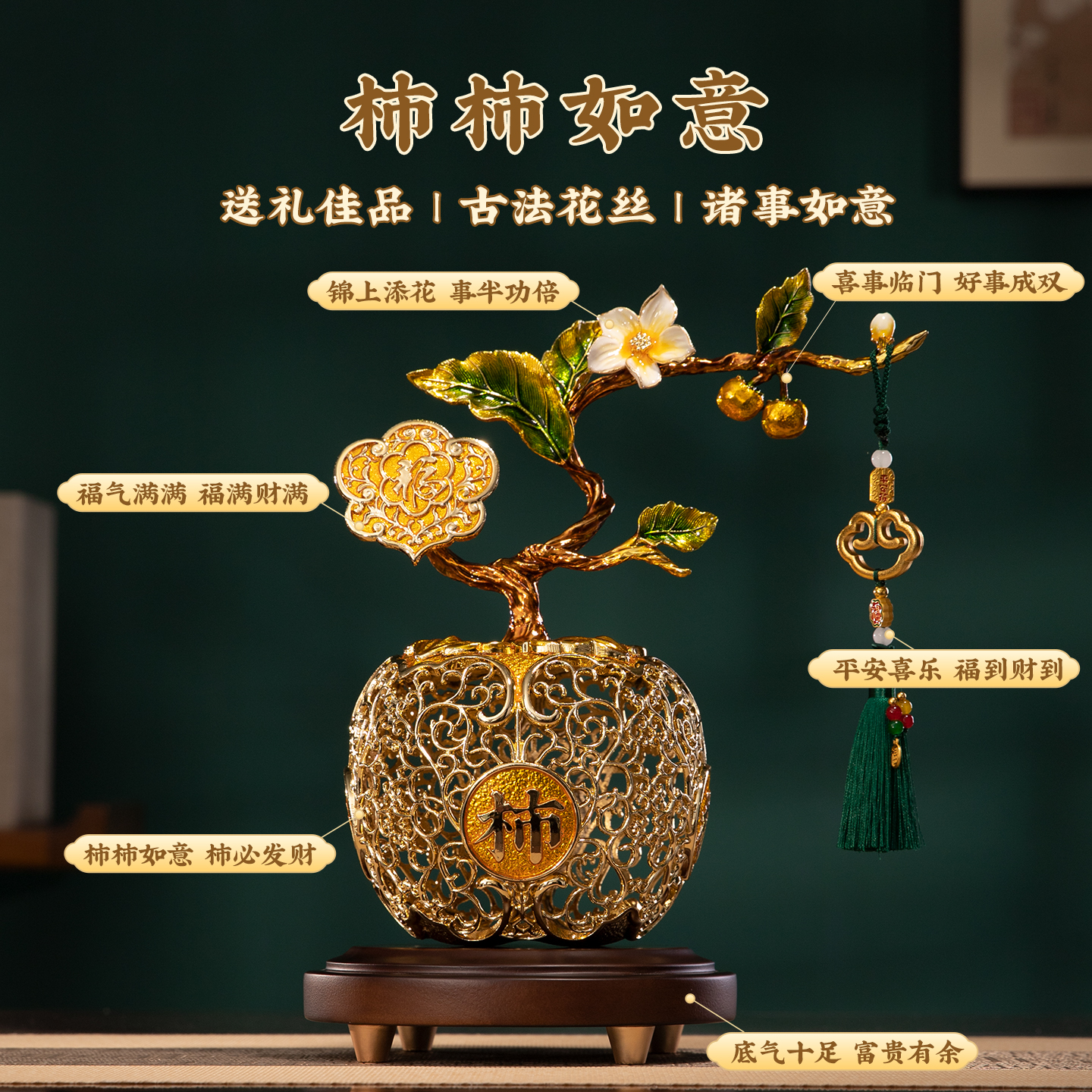 新中式 花丝工艺品柿柿如意珐琅彩摆件搬家乔迁创意国风高端送礼品