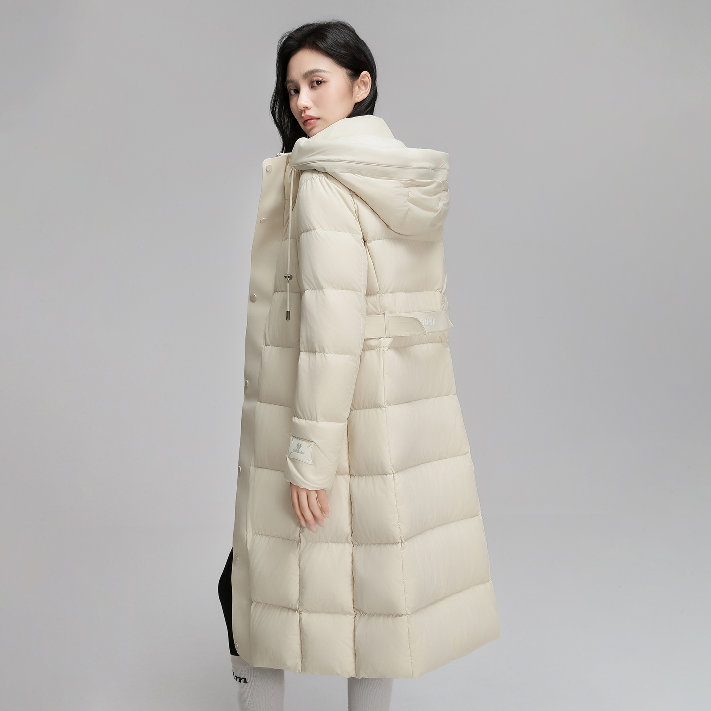 韩国大口袋连帽长款 宽松百搭加厚白鸭绒外套 羽绒服女冬2025年新款