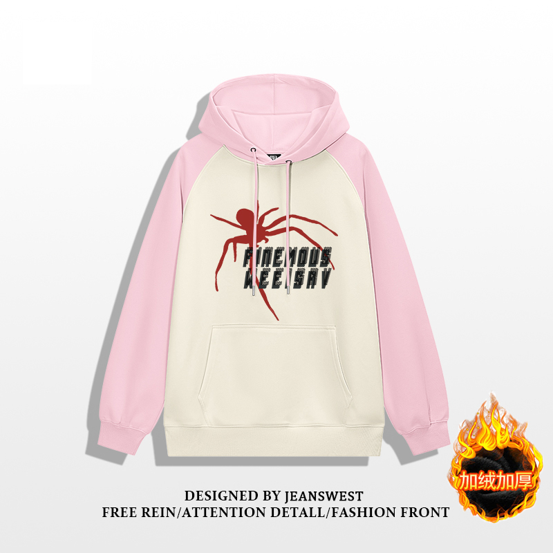 t恤情侣装 潮牌加绒加厚白色长袖 上衣服 秋冬宽松美式 重磅卫衣男士