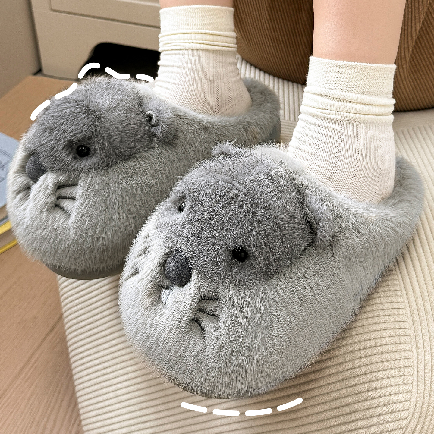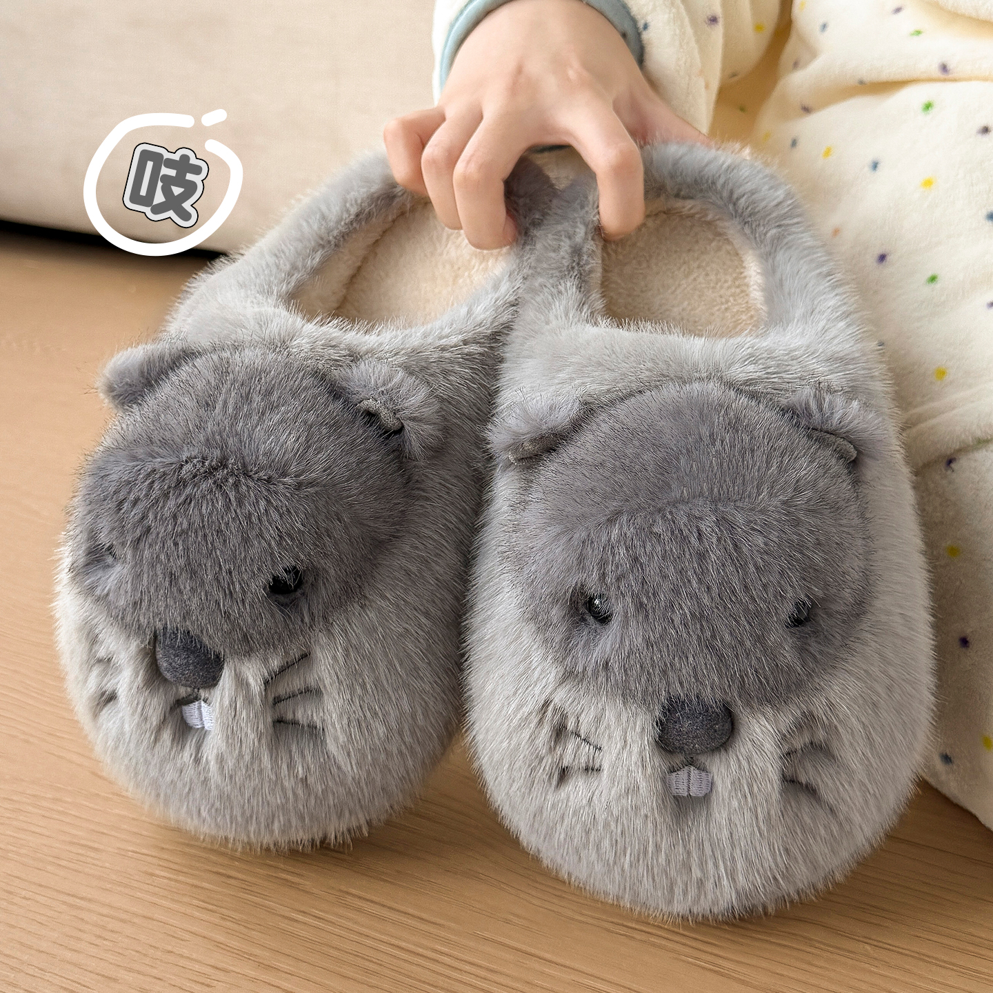 男 包头保暖室内家居宿舍毛绒拖鞋 蕉往可爱土拨鼠棉拖鞋 女情侣冬季