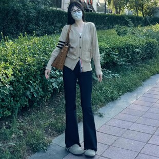 小个子高腰显瘦加绒弹力喇叭马蹄裤 2025新款 女秋季 黑色微喇牛仔裤