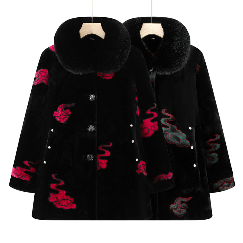 棉袄 毛领外套女妈妈保暖大码 老太太秋冬装 加绒加厚大衣奶奶中长款