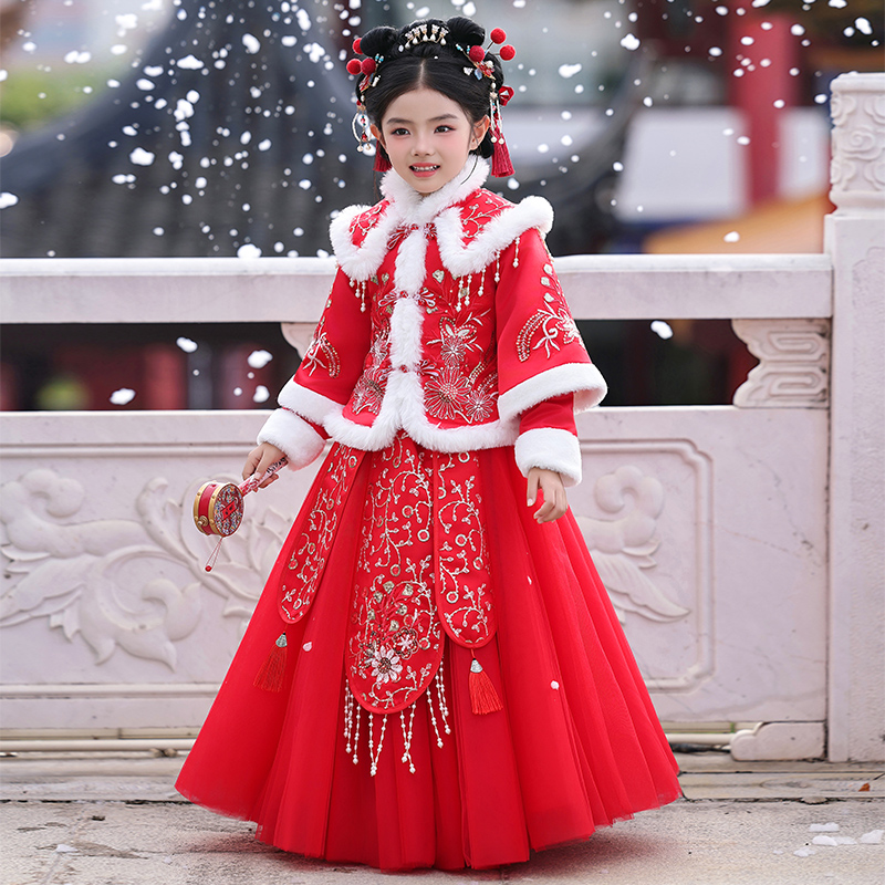 冬款 汉服女童2025新款 小女孩喜庆拜年服唐装 中国风古装 儿童秋冬季