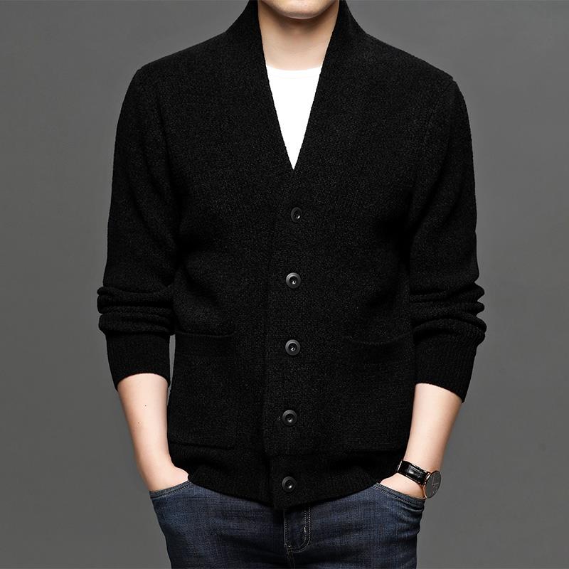 V37重磅立领双开拉链纯色毛衣男秋潮牌cleanfit高级感针织衫 外套