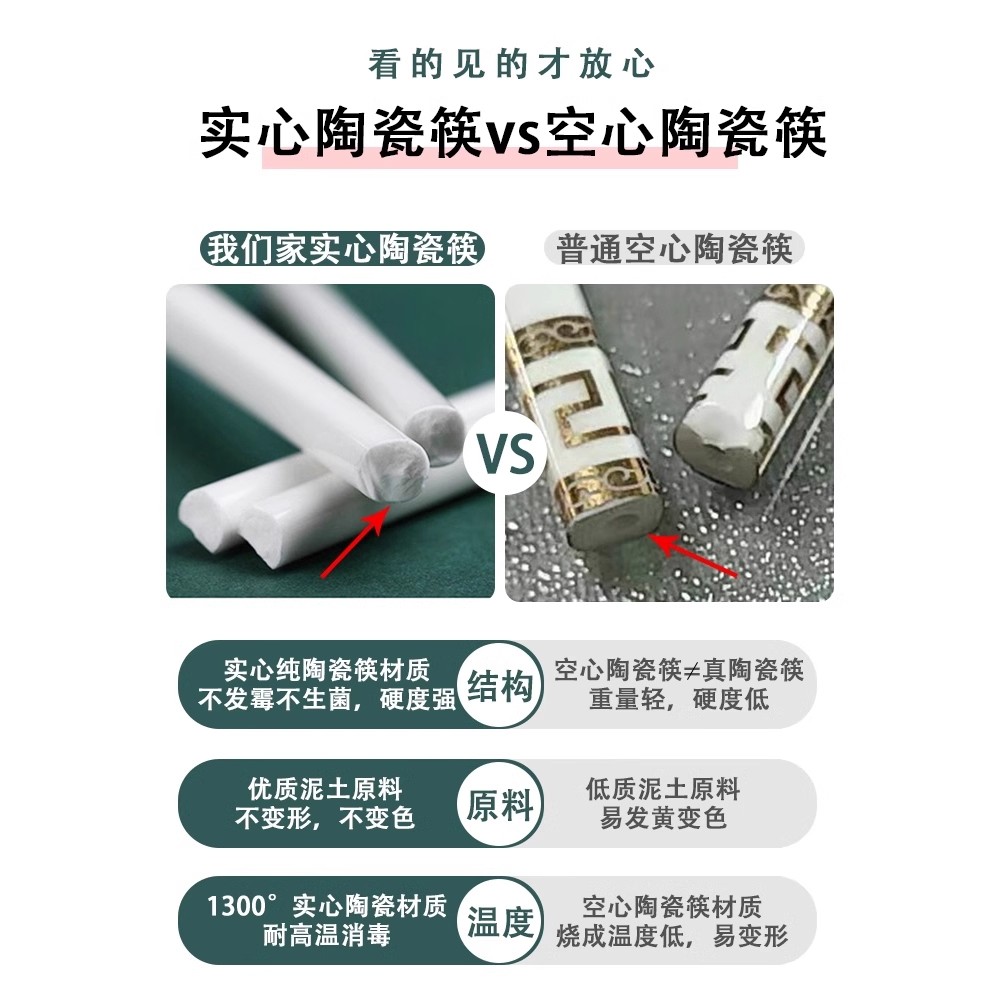景德镇陶瓷筷子家用高档抗菌防霉轻奢高级感防滑耐高温健康易清洗